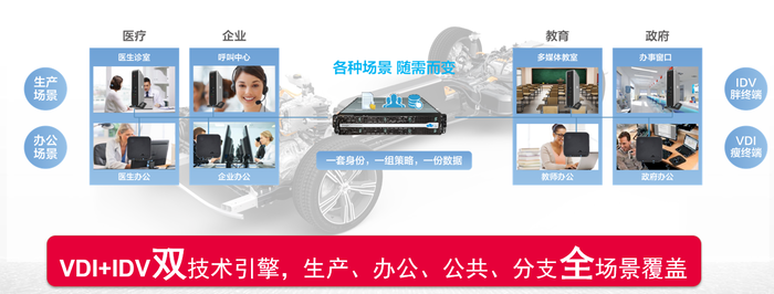 與汽車領域的混合動力解法相同,當前云桌面領域的最佳解法,就是讓VDI與IDV這“雙擎”同時出現在一個方案之中,根據用戶的應用場景靈活選配,而身份、策略、數據、管理可以實現統一,豈不美哉。